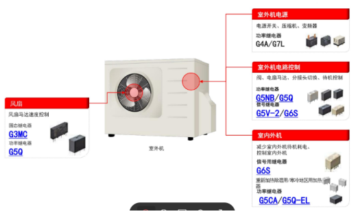 歐姆龍G3MC固態(tài)繼電器和G5Q功率繼電器在空調(diào)外機的中的應用主要用于風扇馬達速度控制。