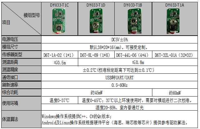 歐姆龍測溫模組是基于歐姆龍紅外高精度溫度傳感器以及先進軟件算法的非接觸式測溫模組,款式多樣,有單點測溫型,陣列測溫型,以及熱成像測溫型等等,通過算法可實現(xiàn)測溫精度±0.2℃,具備數(shù)據(jù)實時輸出顯示,可通過USB接口直接連接電腦和手機,配合上位機軟件或者手機APP程序,使用十分方便。