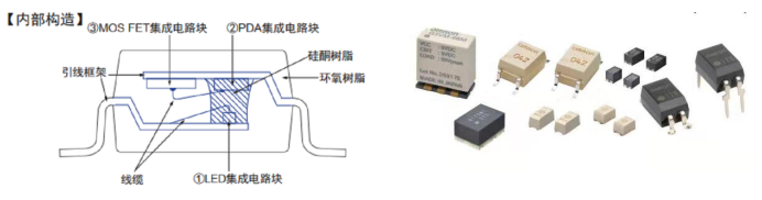 具有超小型,高壽命,低驅(qū)動(dòng)電流,低導(dǎo)通電阻的特點(diǎn);由3個(gè)集成電路塊構(gòu)成:①LED集成電路塊(發(fā)光二極管);②PDA集成電路塊(發(fā)光二極管陣列);③MOS FET集成電路塊,多種端子類型,可負(fù)載電壓20V~600V。