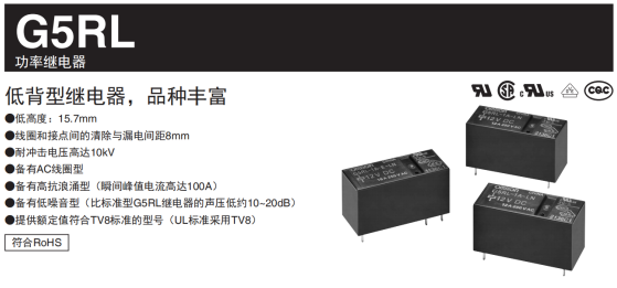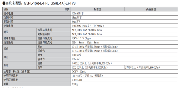 歐姆龍繼電器G5RL抗浪涌型參數(shù):