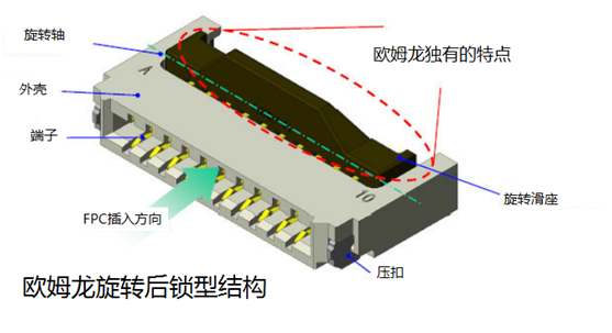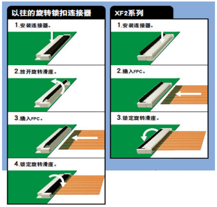 FPC(Flexible Printed Circuit board),即柔性印刷電路板,是用軟性材料做成的PCB。FPC連接器主要應(yīng)用于各種消費類電子產(chǎn)品和辦公設(shè)備的LCD部件。市場上大多數(shù)連接器采用的是前鎖型,而歐姆龍FPC連接器其獨有的后鎖型在結(jié)構(gòu)上具有很大的優(yōu)勢。如圖: