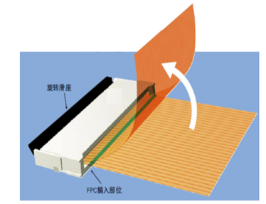一、 旋轉(zhuǎn)式滑座從FPC插入口獨立出來。這樣一來,提起FPC時,滑座并不會斷開。這就保證了即使受到過度的外力,安裝好的FPC也不會脫開。