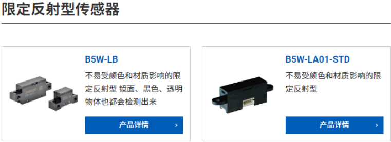 歐姆龍在光學(xué)傳感技術(shù)方面的成功,為其聚光反射式傳感器B5W產(chǎn)品開發(fā)鋪平了道路。該系列傳感器為多領(lǐng)域應(yīng)用而設(shè)計,它們能夠探測到包括反光和透明材質(zhì)在內(nèi)的所有不同類型的物體。
