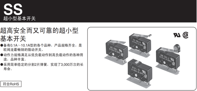 在體外診斷儀器的研發(fā)生產(chǎn)中,必定離不開一種重要組成零件,那就是開關(guān)。開關(guān)可在需頻繁換接電路的設(shè)備中進(jìn)行自動控制及安全保護(hù),廣泛應(yīng)用在各式儀器儀表設(shè)備中,開關(guān)雖小,起的作用卻是不可替代的。像歐姆龍的SS超小型基本開關(guān)系列,不僅規(guī)格齊全,從0.1A~10.1A均有配備,而且機(jī)械壽命長,最高可達(dá)3000萬次,深受診斷儀器生產(chǎn)廠商的喜愛。廣州鼎悅電子科技有限公司專業(yè)代理歐姆龍微動開關(guān)SS-5GL,傳感器等;歡迎電話咨詢廣州鼎悅電子科技有限公司;相信我們可以帶給您不一樣的選擇;如圖: