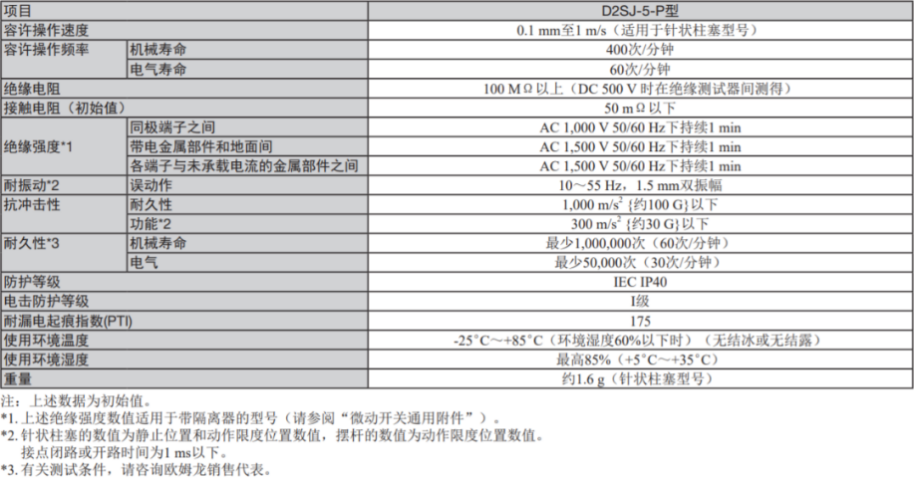 歐姆龍D2SJ擁有19.8mm×6.4mm×10.2mm的超小型封裝,和封密型輕觸開關(guān)一樣,歐姆龍D2SJ采用了防塵、防水措施,能夠在-25℃~+85℃(濕度環(huán)境60%以下)等環(huán)境惡劣中也保持較高的性能。除此之外,在環(huán)境溫度20±2℃ 、環(huán)境濕度65±5%RH、操作頻率30次/min的情況下,歐姆龍D2SJ最大可達(dá)250V的額定電壓,5A的阻性負(fù)載,適用于更廣泛的產(chǎn)品。