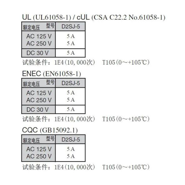 對歐姆龍而言,安全向來重要。歐姆龍D2SJ的額定電壓、額定電流均達(dá)到中國CQC、北美UL和歐洲ENEC的安全標(biāo)準(zhǔn),并全面落實中國、北美和歐洲GB15092.1、UL61058-1、EN61058-1要求的指標(biāo)。值得一提的是歐姆龍D2SJ在DC 500V時,絕緣電阻可達(dá)100MΩ以上,電阻阻值越大,流過它的電流越小,故使用起來也就越安全。