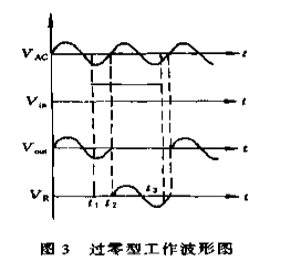 由于觸發(fā)信號方式不同,AC—SSR還分為過零型觸發(fā)(Z型)和非過零型或隨機(jī)型(P型)觸發(fā)兩種,如圖為其工作波形圖??梢娺^零型和非過零型之間的區(qū)別主要在于負(fù)載交流電流導(dǎo)通的條件。過零型在輸入信號Vin施加的t1時刻,由于此時電源電壓處在非過零區(qū),其輸出端不導(dǎo)通,只有當(dāng)電源電壓到達(dá)過零區(qū)t2時,輸出端負(fù)載中才有電流流過。而非過零型在輸入信號Vin施加的t1時刻,不管電源電壓處在什么狀態(tài),負(fù)載立刻導(dǎo)通。這兩種類型的固體繼電器關(guān)斷條件則相同。
