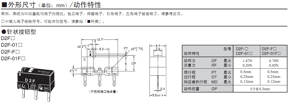 歐姆龍微動開關,D2F-01F-T,歐姆龍微動開關D2F