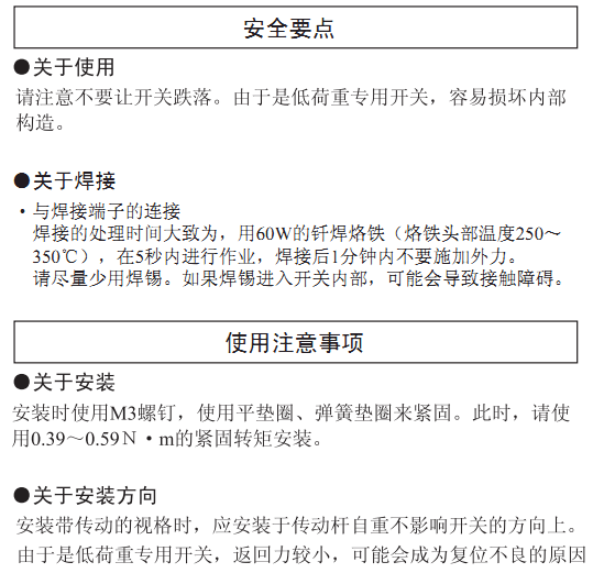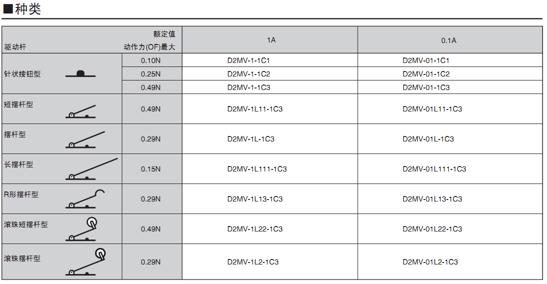 低負(fù)載動(dòng)作型的小型基本開關(guān)