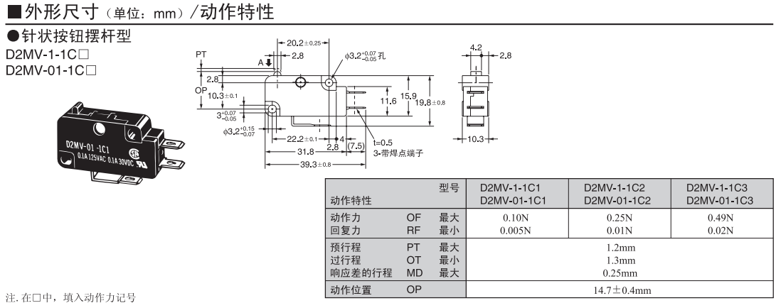 歐姆龍微動(dòng)開關(guān),D2MV-1-1C3,歐姆龍微動(dòng)開關(guān)D2MV
