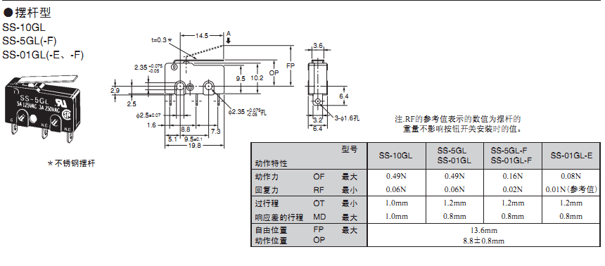 歐姆龍微動開關(guān),SS-5GL,歐姆龍微動開關(guān)SS