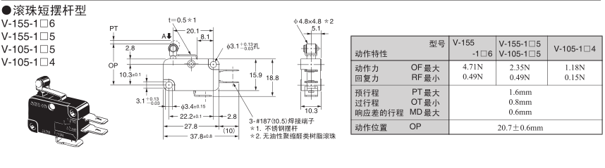 | SPDT | 2.35N | V-155-1C5 | V-105-1C5 | V-155-1C5-T | V-105-1C5-T | ||