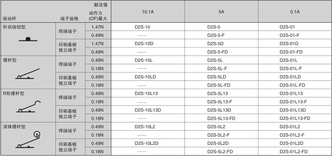 D2S 系列小型微動開關