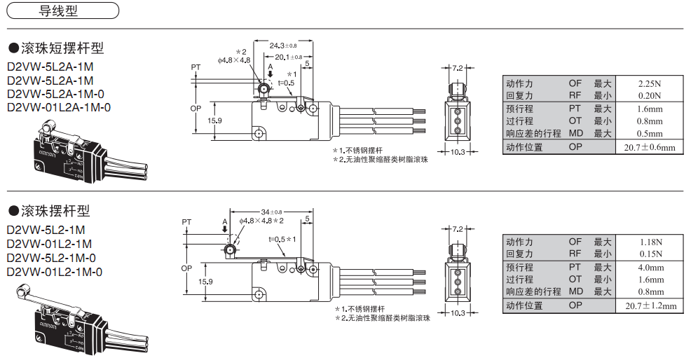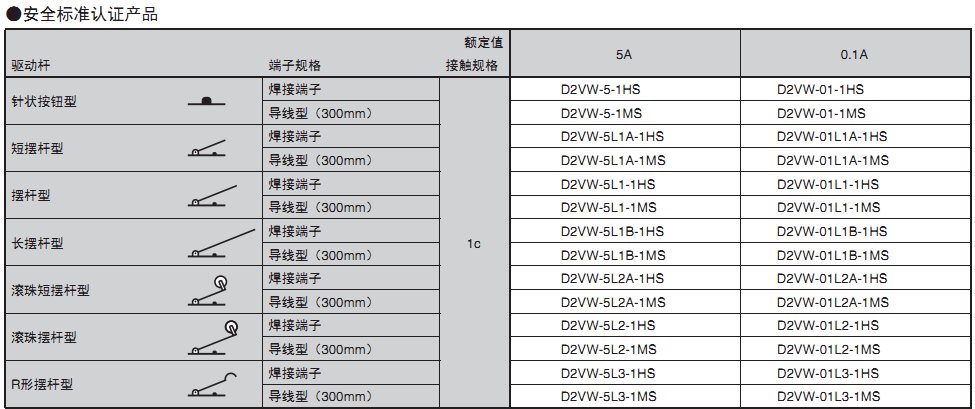 D2VW 密封型小型基本開關(guān)