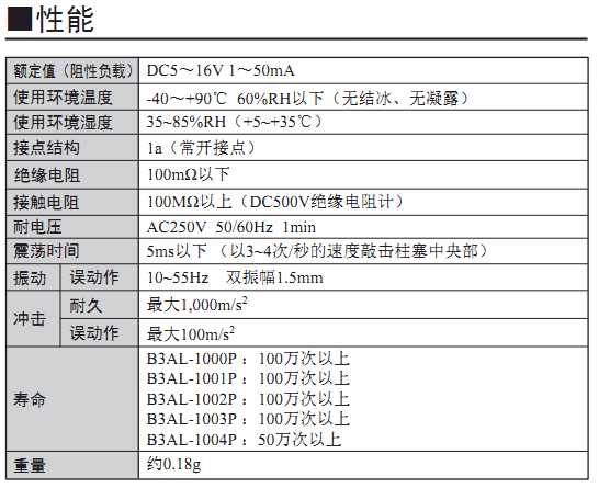 高負(fù)載型也實(shí)現(xiàn)了高壽命。(參考值;OF=5N、壽命50萬次)