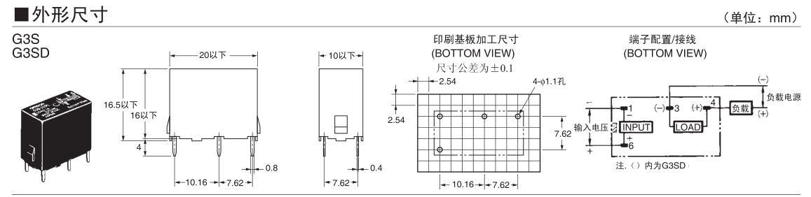 ? 與G6B電磁繼電器的端子配置相同,根據用途可以混合使用。