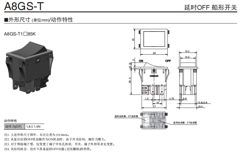 搭載了即使進行開關(guān)ON至OFF操作,接點仍會保持ON,通過外部信號使接點切換至OFF的“延時OFF功能”。