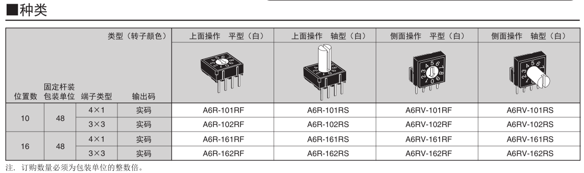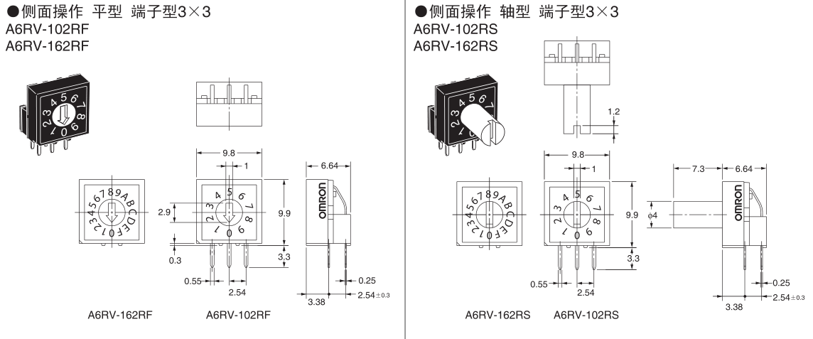 •  A6R-102RS旋轉(zhuǎn)DIP開關(guān)