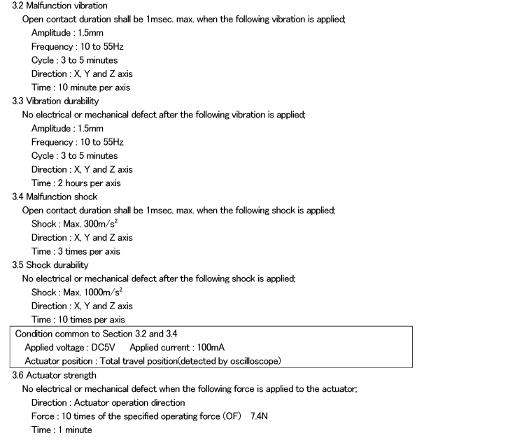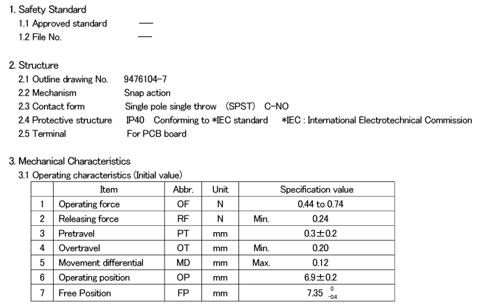 D2FC-F-7N (20M) 克力為:60+/-15G,壽命為2000萬次;