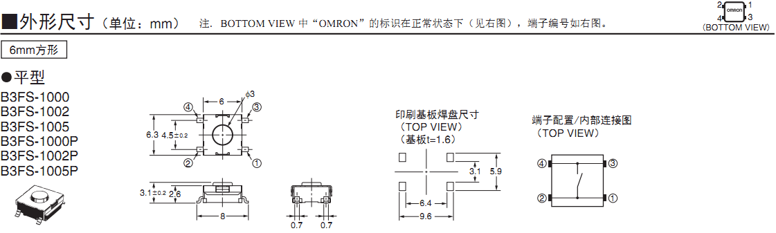 基板表面安裝型,備有6mm方形、壓花帶包裝型