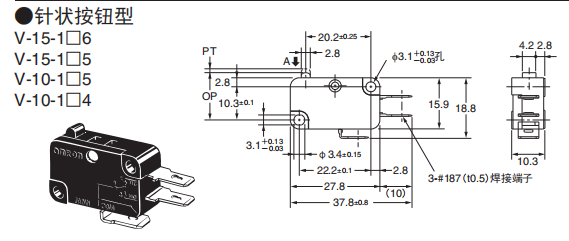 焊接端子(A) | SPDT | 3.92N | V-15-1A6 | --- | V-15-1A6-T | --- |
