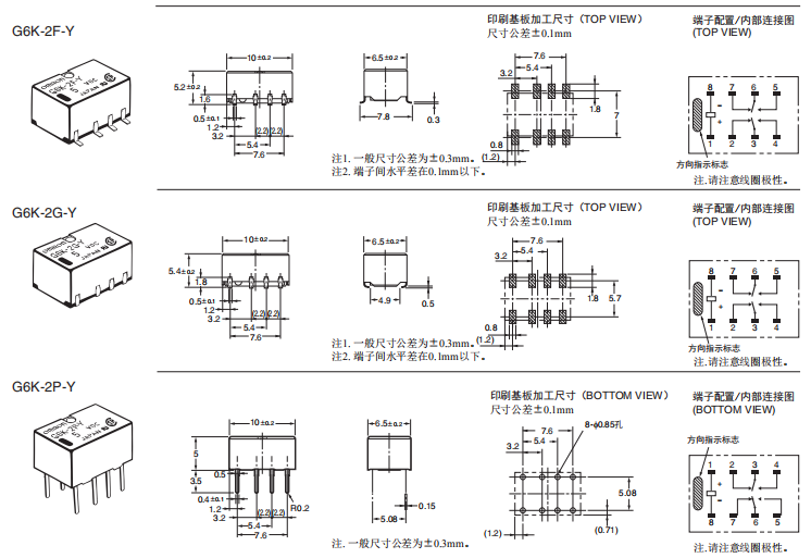 •  高5.2mm×寬6.5mm×長10mm的超小型,對應(yīng)高密度封裝(G6K(U)-2F(-Y)型)