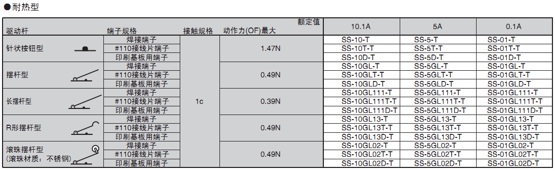 備有0.1A~10.1A型的各個(gè)品種,產(chǎn)品規(guī)格齊全,是歐姆龍暢銷的微動(dòng)開關(guān)。
