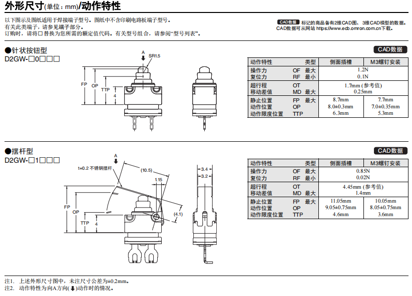 • 超小型微動(dòng)開關(guān)D2GW系列