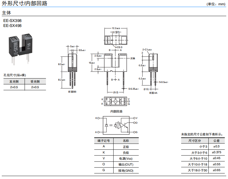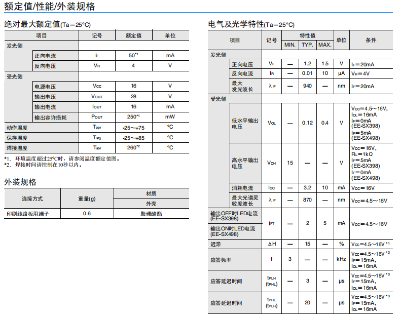 • EE-SX398/EE-SX498 微型光電傳感器(透過(guò)型)