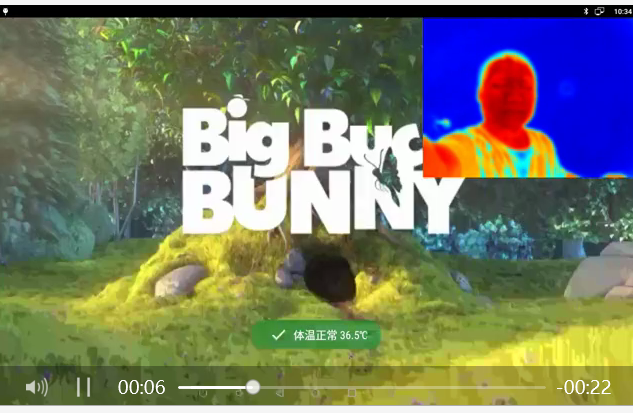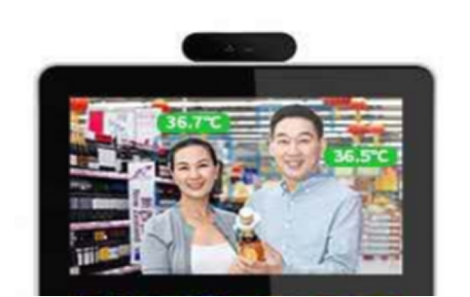 在大屏上安裝熱成像雙光測溫模塊,直接實(shí)現(xiàn)廣告播放及多人測溫。有人時測溫,無人時播放廣告。